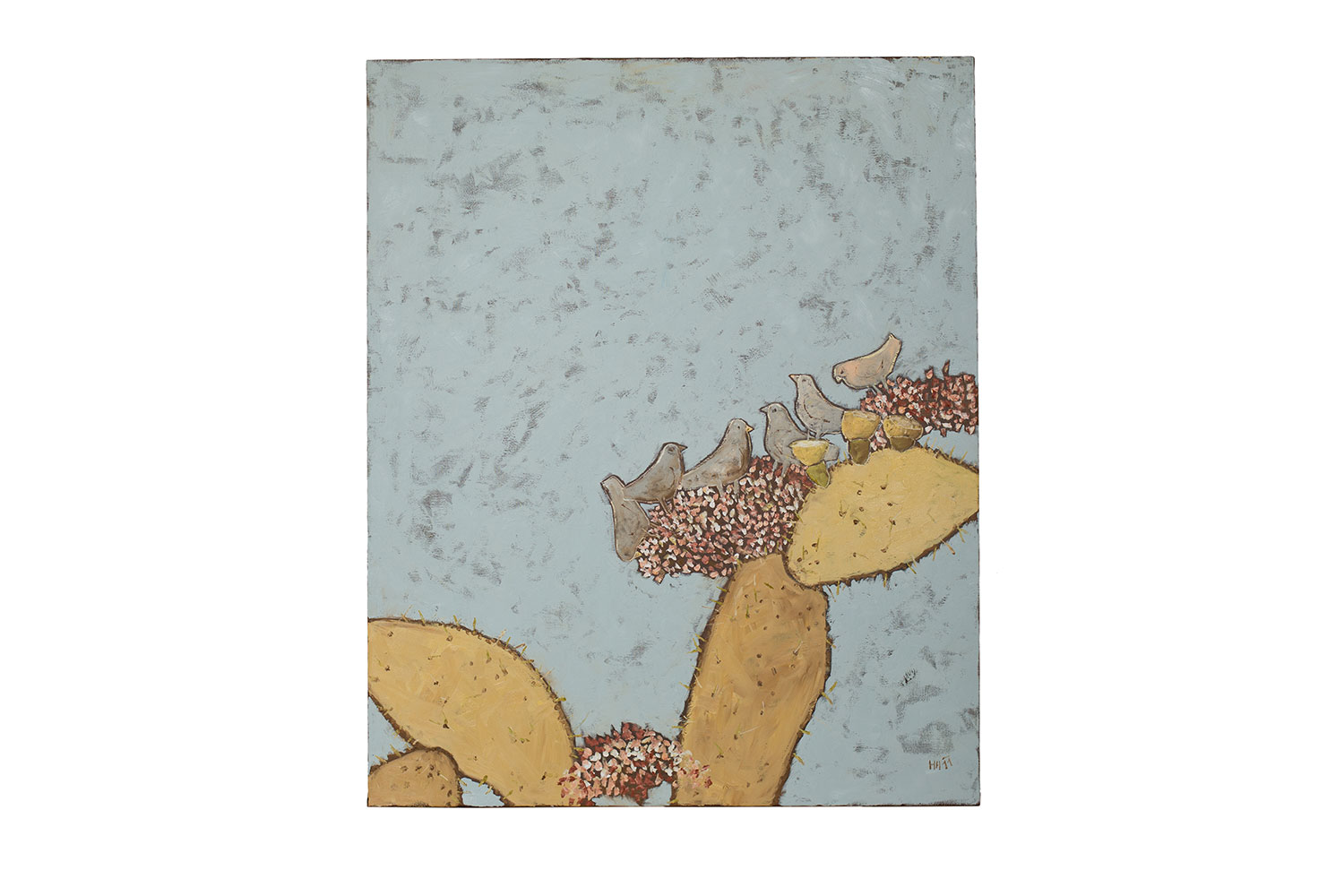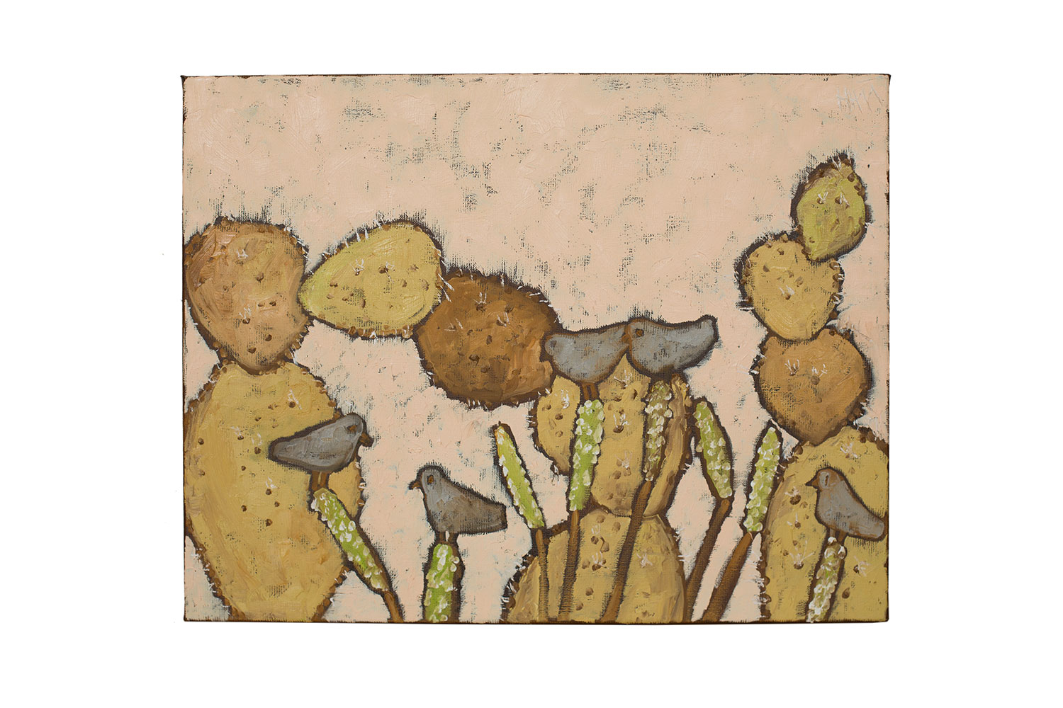 Feigenkaktus und Vögel, 2011, 90x80, Öl auf Leinen