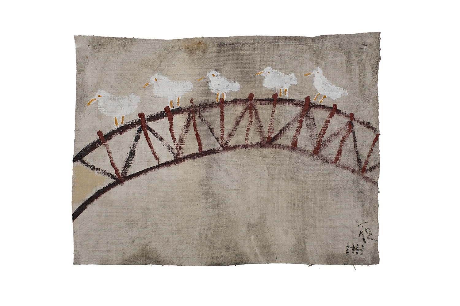 Möven auf Brücke, 2012, 20x25, Öl auf Leinen