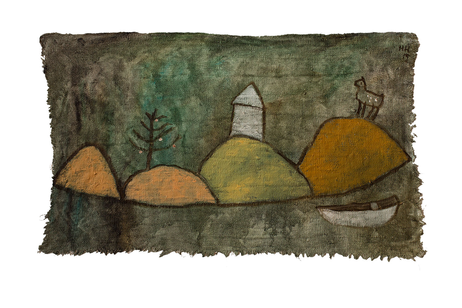 Hügellandschaft mit Ziege, 2012, 30x35, Öl auf Leinen